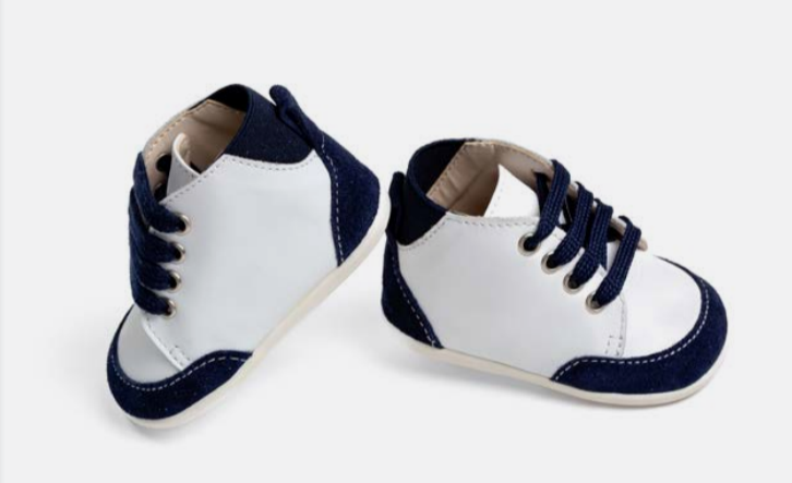 Μποτάκια για τα πρώτα βήματα, από λευκό δέρμα και μπλε καστόρ, κλείσιμο με κορδονάκι, νούμερα 18-21