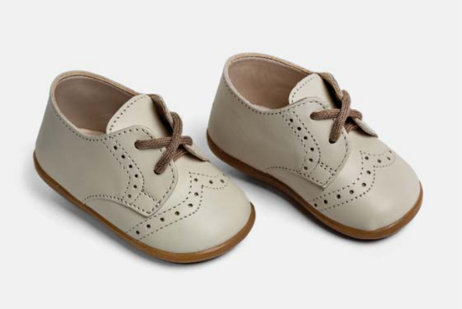 Παπουτσάκι χαμηλό για τα πρώτα βήματα, τύπου brogues, από εκρού δέρμα , κλείσιμο με κορδονάκι, νούμερα 18-21