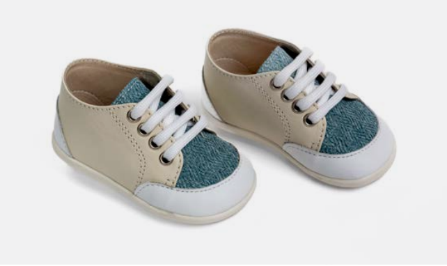 Παπουτσάκι χαμηλό για τα πρώτα βήματα, από εκρού δέρμα και μέντα ύφασμα, κλείσιμο με κορδονάκι, νούμερα 18-21