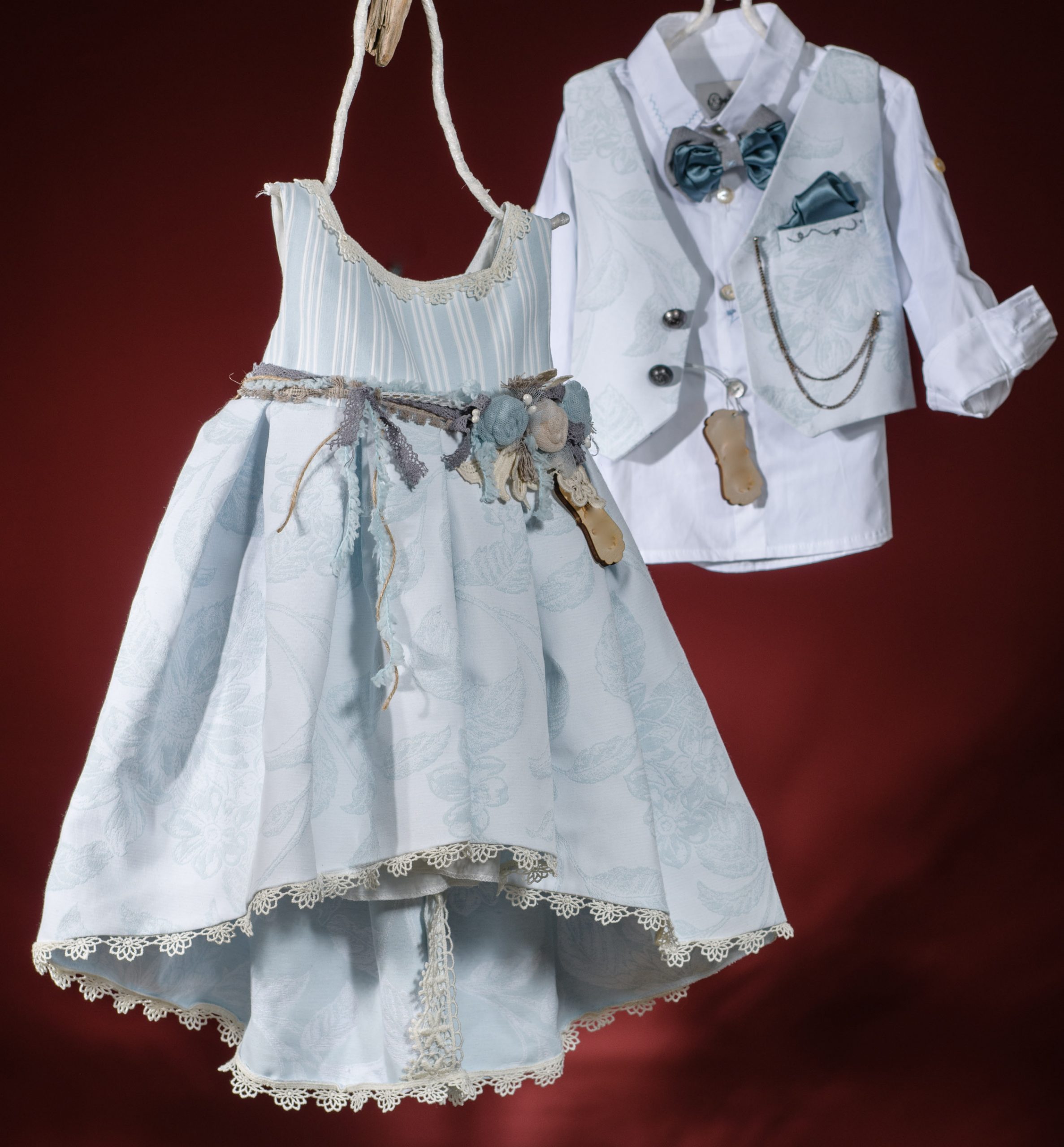 Ένα chic χειροποίητο σύνολο “Ερωφίλη” για κορίτσι σε γαλάζιες αποχρώσεις που περιλαμβάνει: