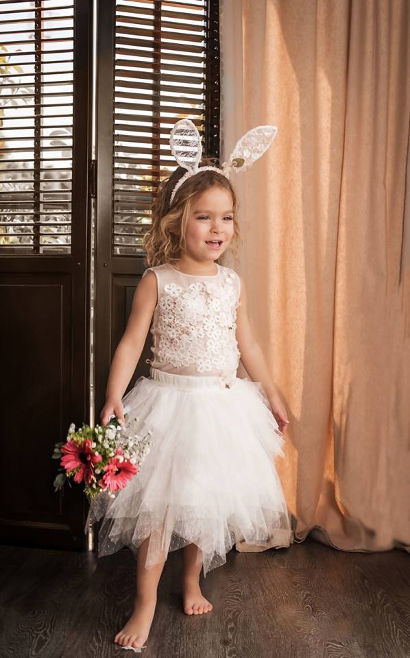 Ένα κομψό αέρινο σύνολο για κορίτσι σε υπόλευκο που περιλαμβάνει: