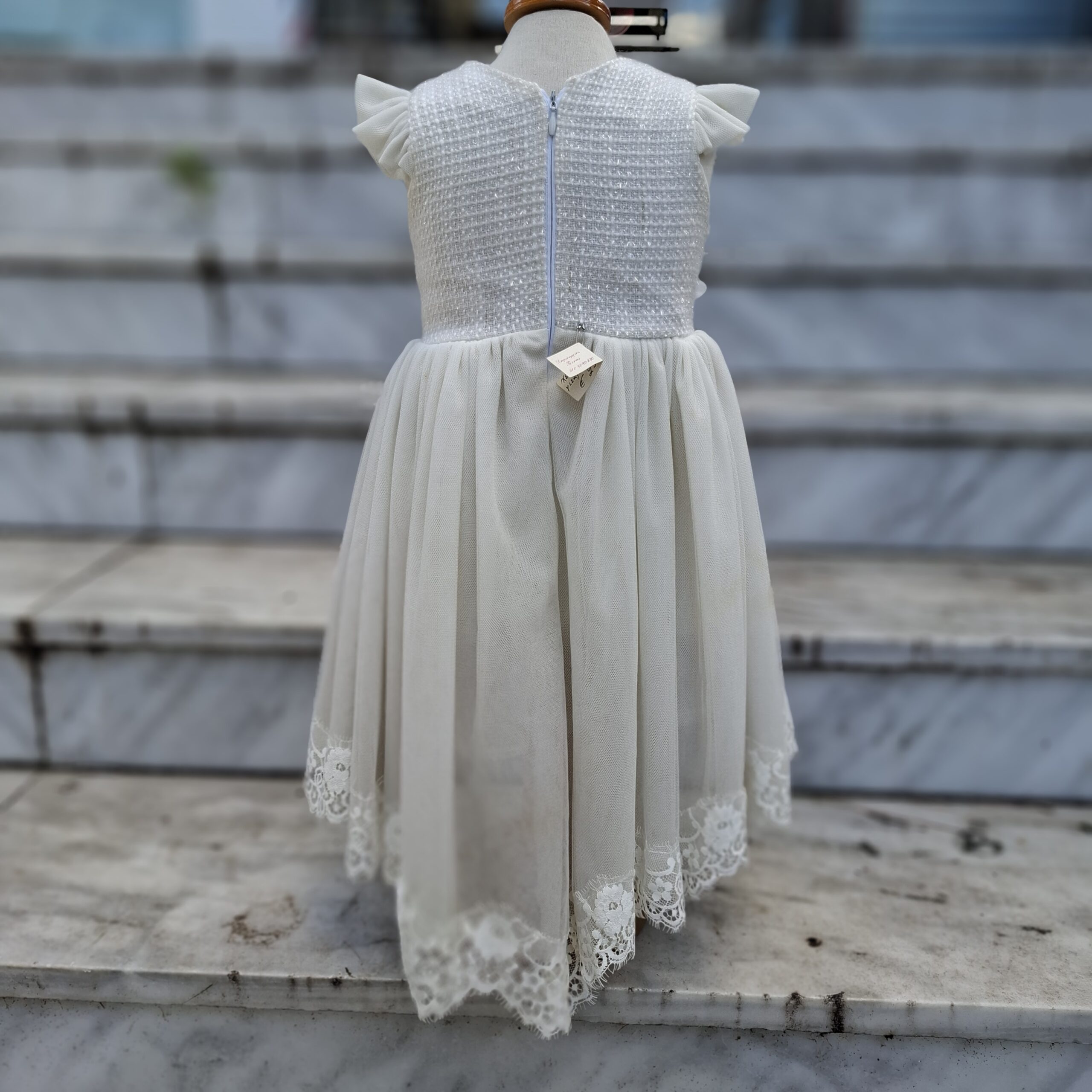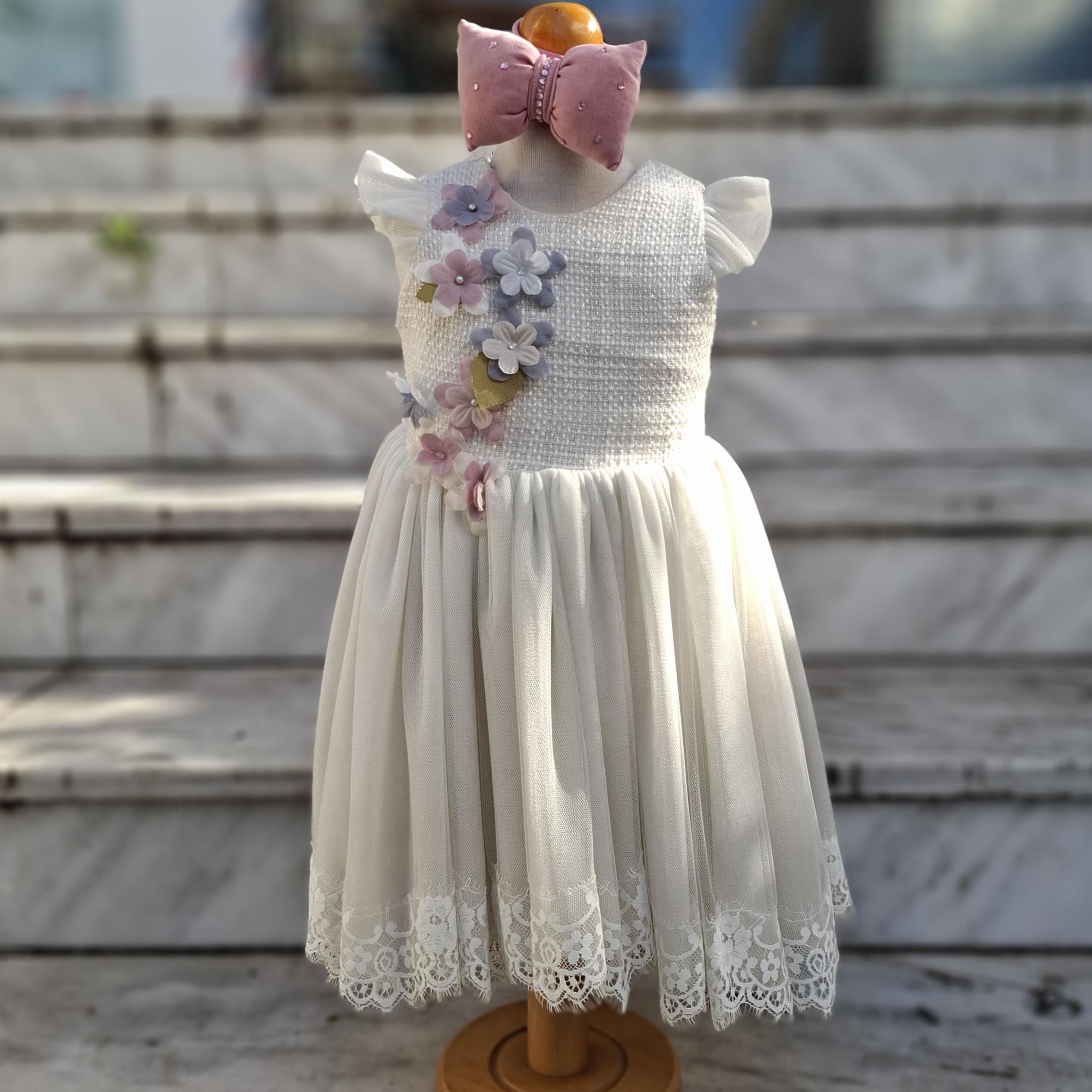 Ένα ρομαντικό βαφτιστικό σύνολο για κορίτσι σε εκρού χρώμα που περιλαμβάνει: