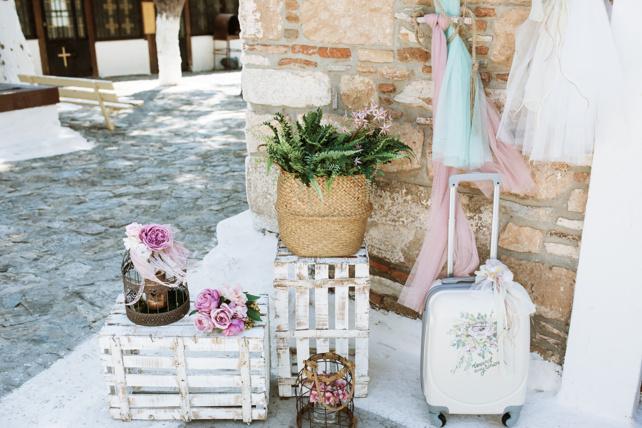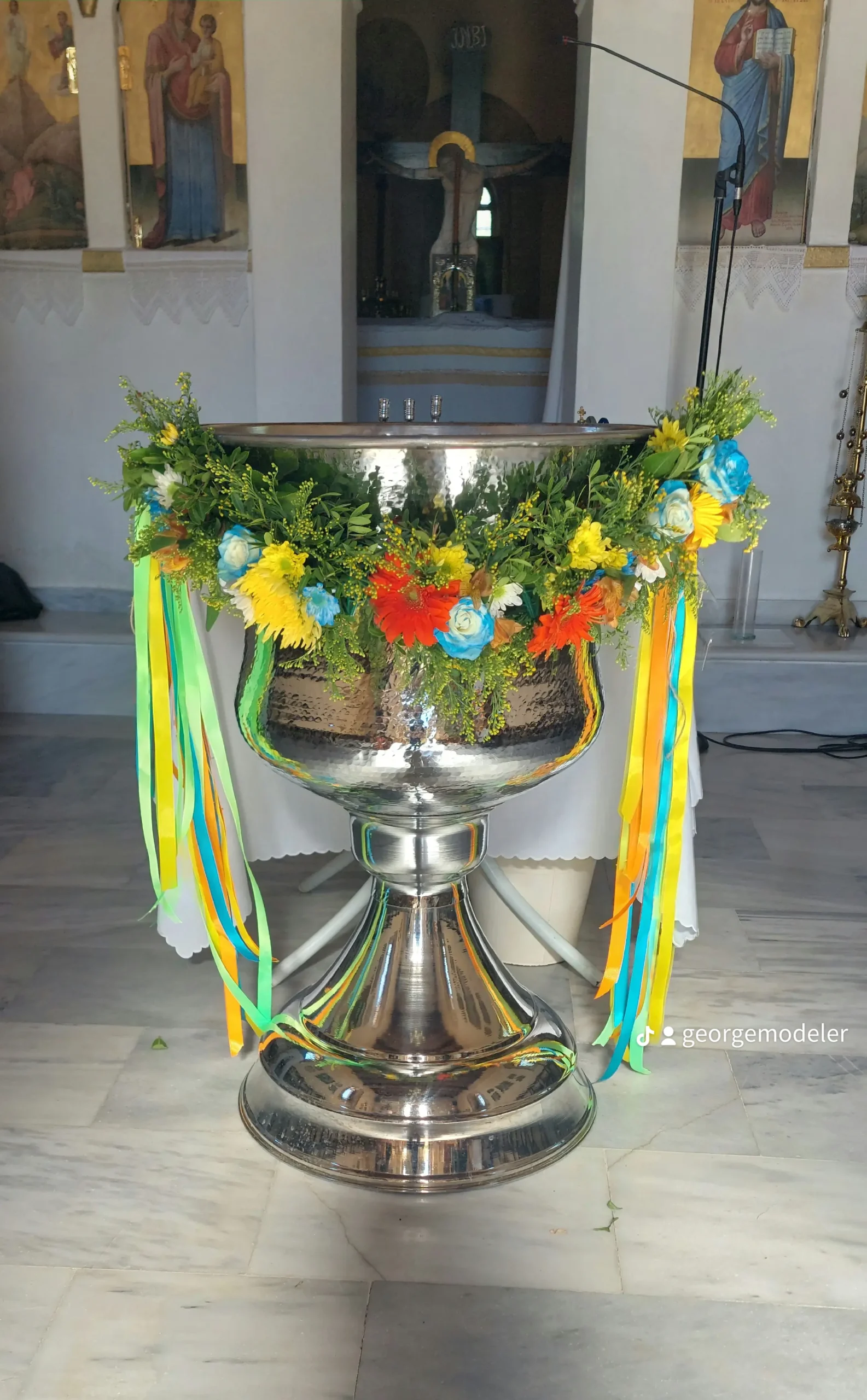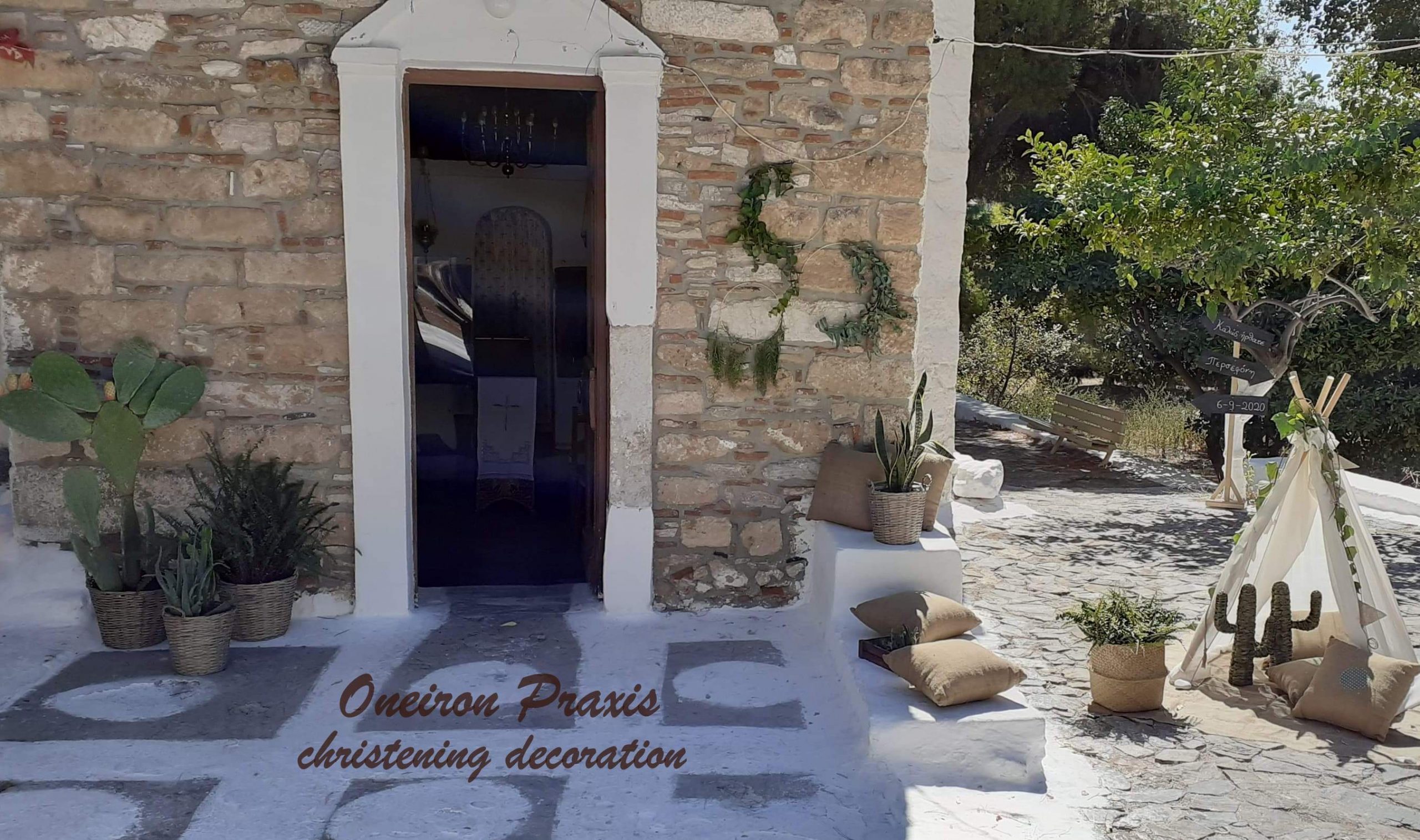 -Εξωτερικός στολισμός εκκλησίας …με υφάσματα, θεματικά στοιχεία, 6 μεγάλα κασπώ με φρέσκα λουλούδια εποχής , ρέπλικες ή vintage στοιχεία σχετικά με το θέμα. Στολισμός στις κολώνες ή στη πόρτα της εκκλησίας με αέρινα υφάσματα και μπουκέτα από φρέσκα λουλούδια εποχής…