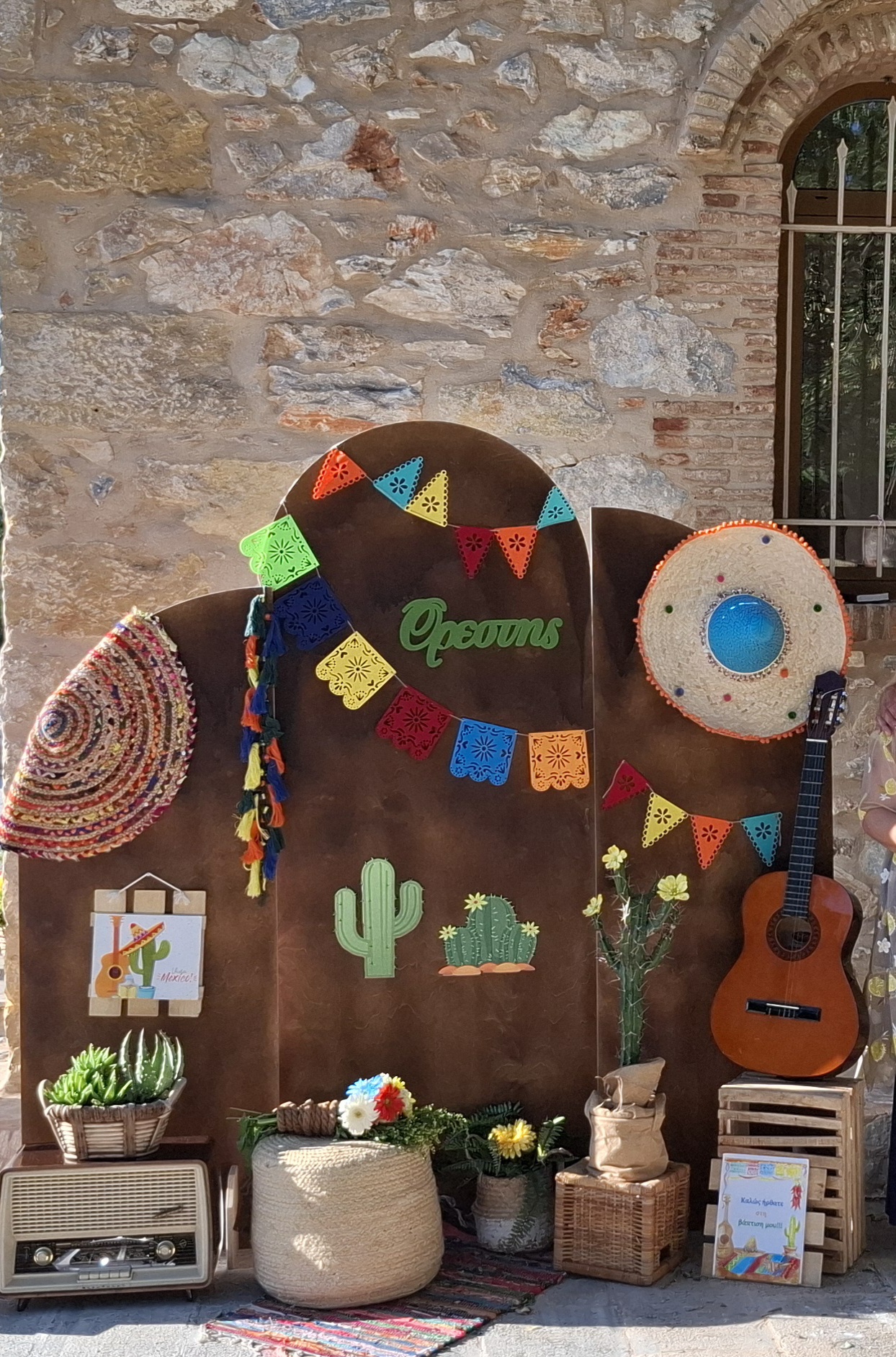-Corner φωτογράφισης ….μια γωνιά με 3 back dropes και θεματικά στοιχεία για να βγάλετε πολλές όμορφες φωτογραφίες στο concept της βάφτισης (προαιρετικά μπορεί να μπει και γιρλάντα με μπαλόνια και λουλούδια)
