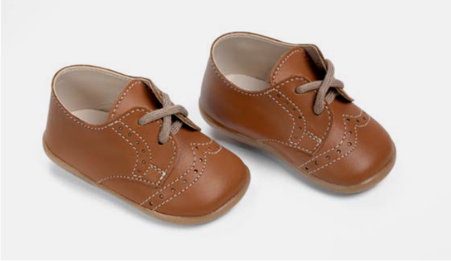 Παπουτσάκι χαμηλό για τα πρώτα βήματα, τύπου brogues, από ταμπά δέρμα , κλείσιμο με κορδονάκι, νούμερα 18-21