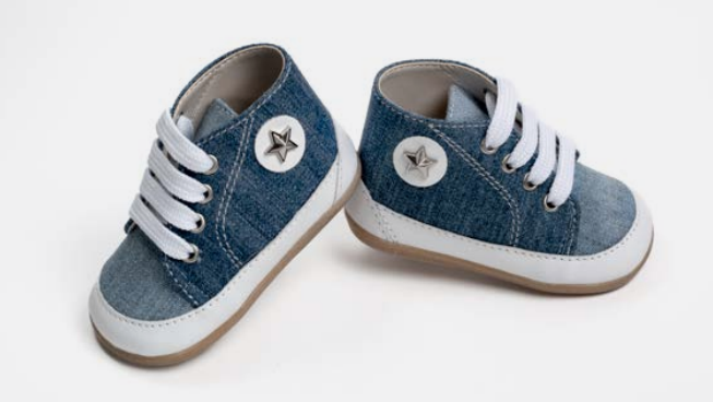 Μποτάκι δετό για τα πρώτα βήματα σε συνδυασμό blue jean ύφασμα, ένα ιδιαίτερο σταράκι για τα πιο όμορφα ποδαράκια!!!