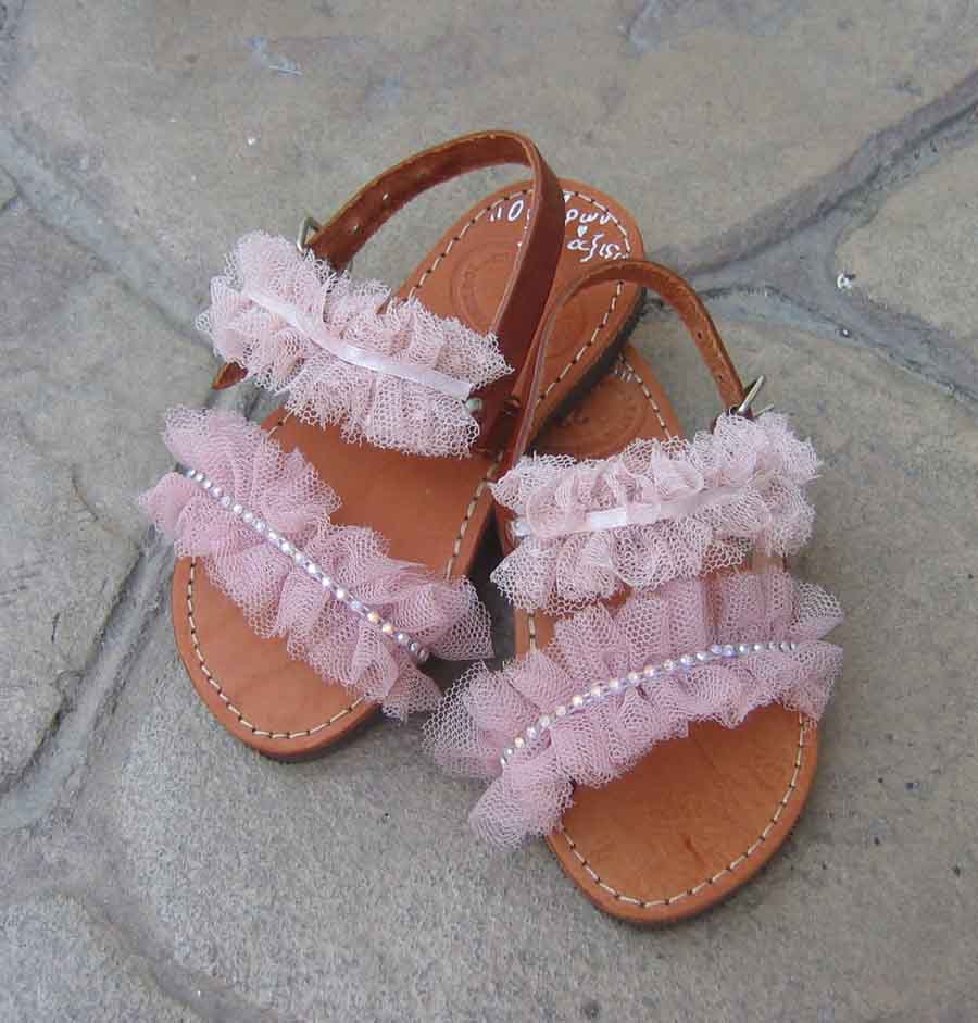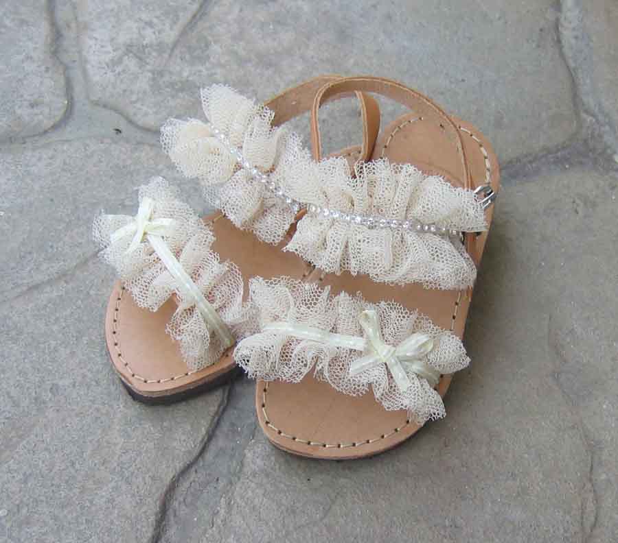 Χειροποίητα παιδικά δερμάτινα σανδάλια από εξαιρετικής ποιότητας υλικά, ρομαντικό στυλ, διακοσμημένα με γαλλικό τούλι και τρέσσα από λεπτά κρύσταλλα. Μοναδικά υποδήματα,κατασκευασμένα από υψηλής ποιότητας ελληνικό δέρμα για τέλεια εφαρμογή και άνεση. Ιδανικά να φορεθούν και για βαπτιστικά πέδιλα. Οι μικρές μας φίλες θα κλέψουν την παράσταση σε όλες τις εμφανίσεις τους. Οι φωτογραφίες των προϊόντων είναι όσο το δυνατόν πιο ακριβείς όμως επειδή όλα τα σανδάλια είναι χειροποίητα μπορεί να έχουν μικρές αποκλίσεις.Επειδή τα σανδάλια μας κατασκευάζονται μετά την παραγγελία σας,έχουν χρόνο προετοιμασίας 3-6 εργάσιμες ημέρες και παράδοση στην Ελλάδα σε 1-2 μέρες,ενώ στους διεθνείς προορισμούς διαρκεί 5-12 ημέρες.